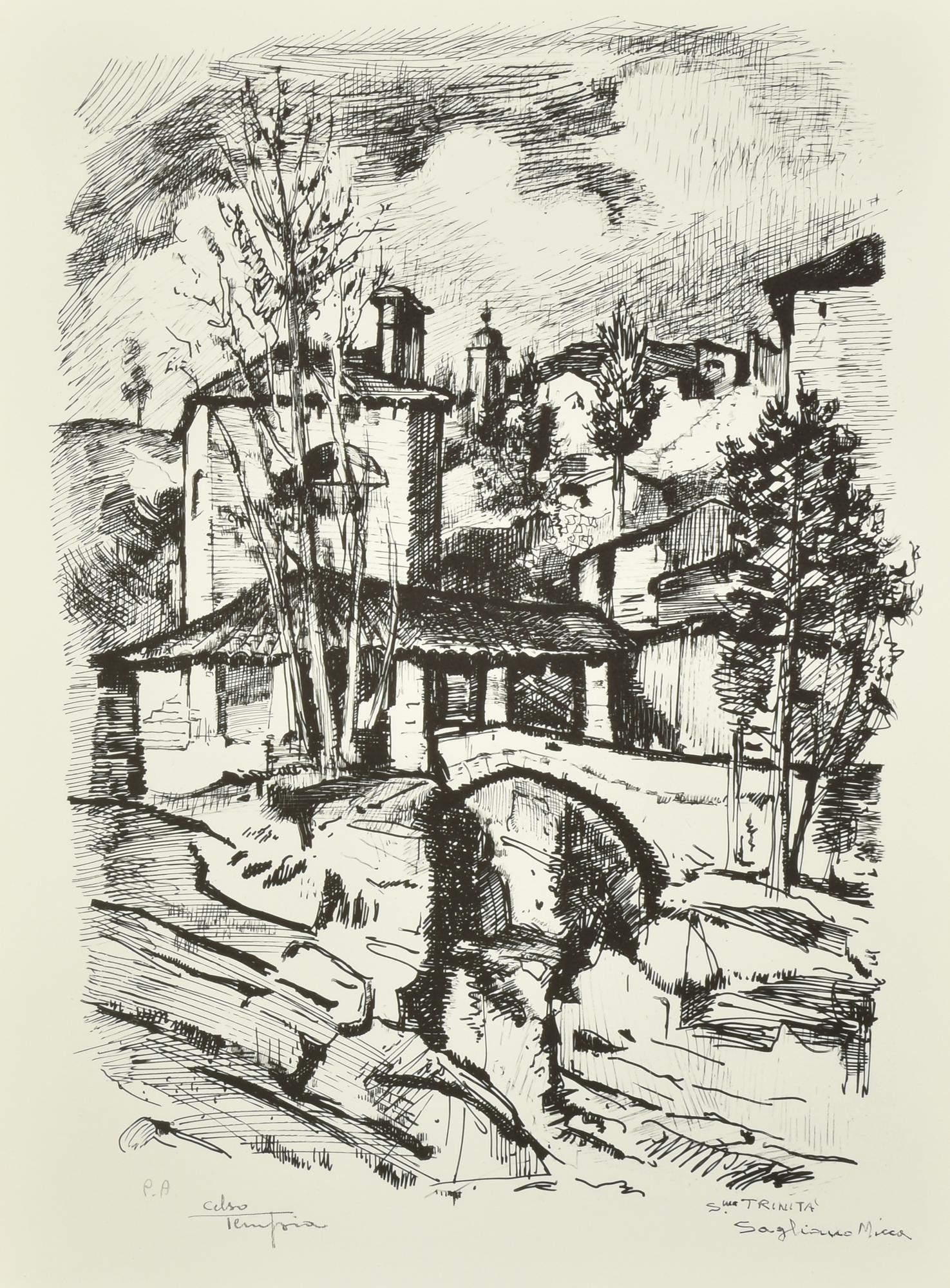 Celso Tempia PAESAGGIO BIELLESE litografia su carta, cm 50x35, es p.a. firma