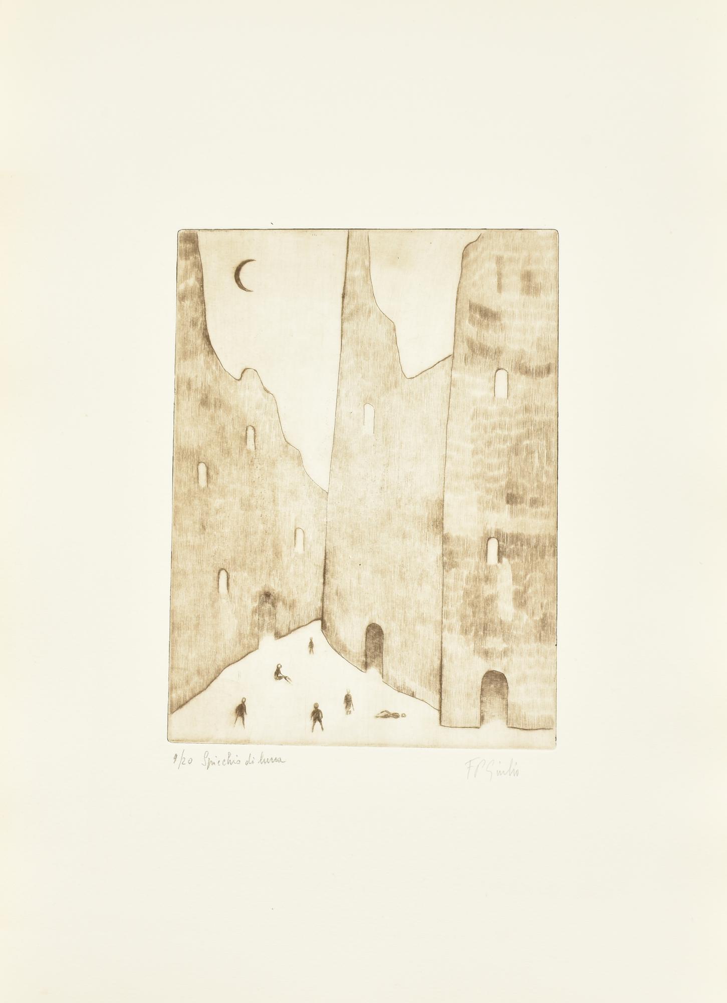 F. P. Giulio SPICCHIO DI LUNA incisione su carta, battuta cm 24x18, su foglio...