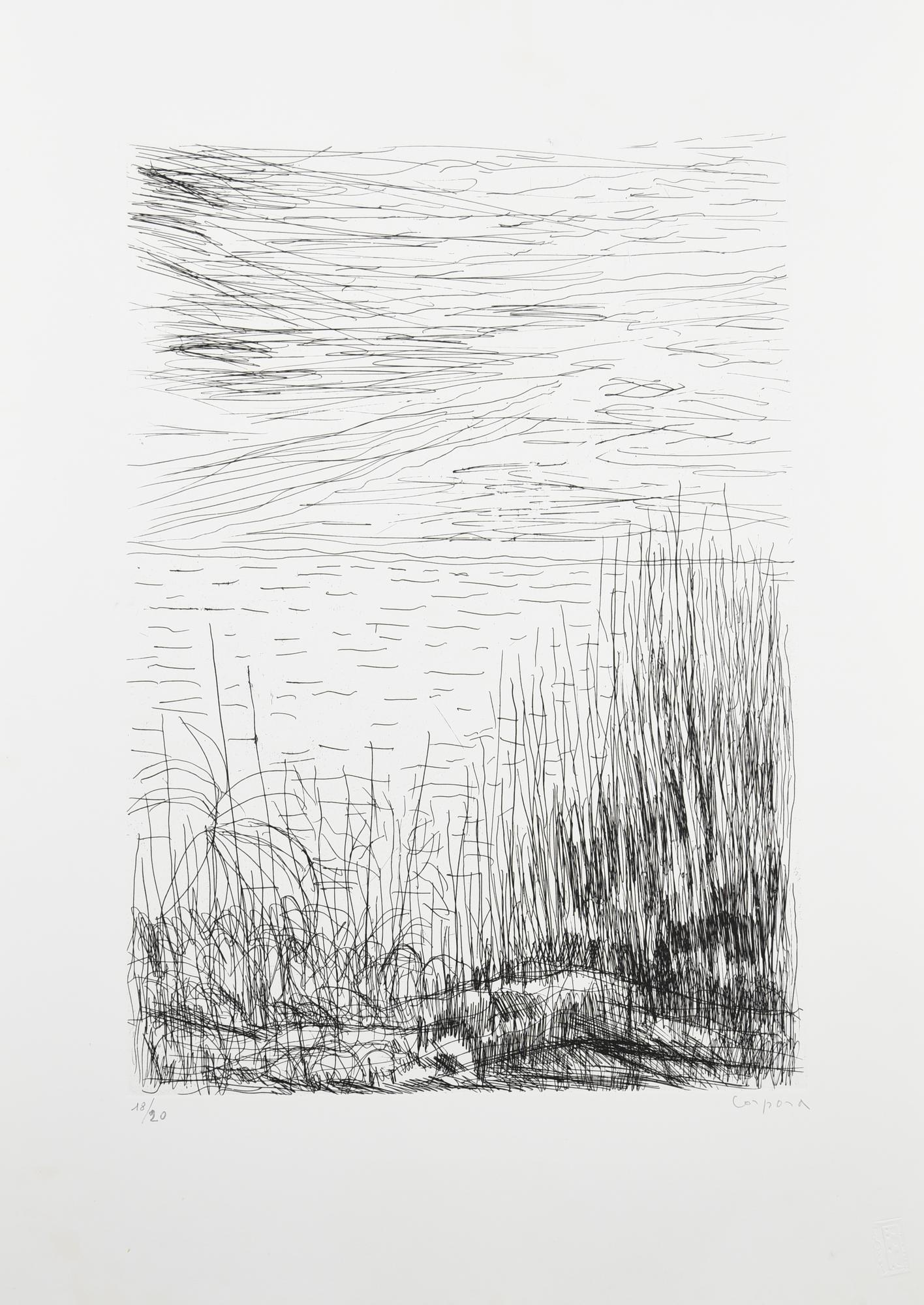 Antonio Corpora CANNETO VARIAZIONE NERA acquaforte, cm 49,5x34,5, su foglio...
