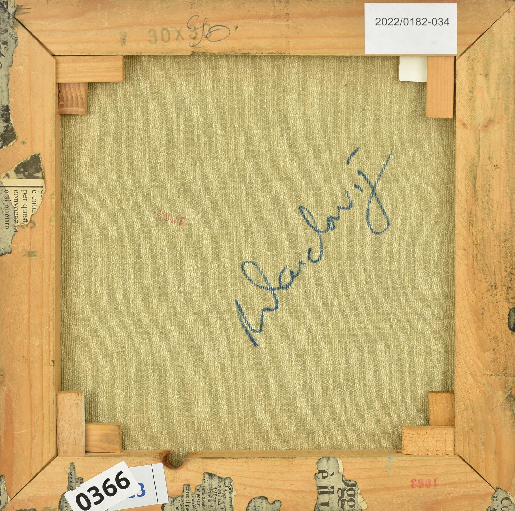Lot 42 | Mohamed Wandavi BILANCIA tecnica mista su tela, cm 30x30 firma e data sul...