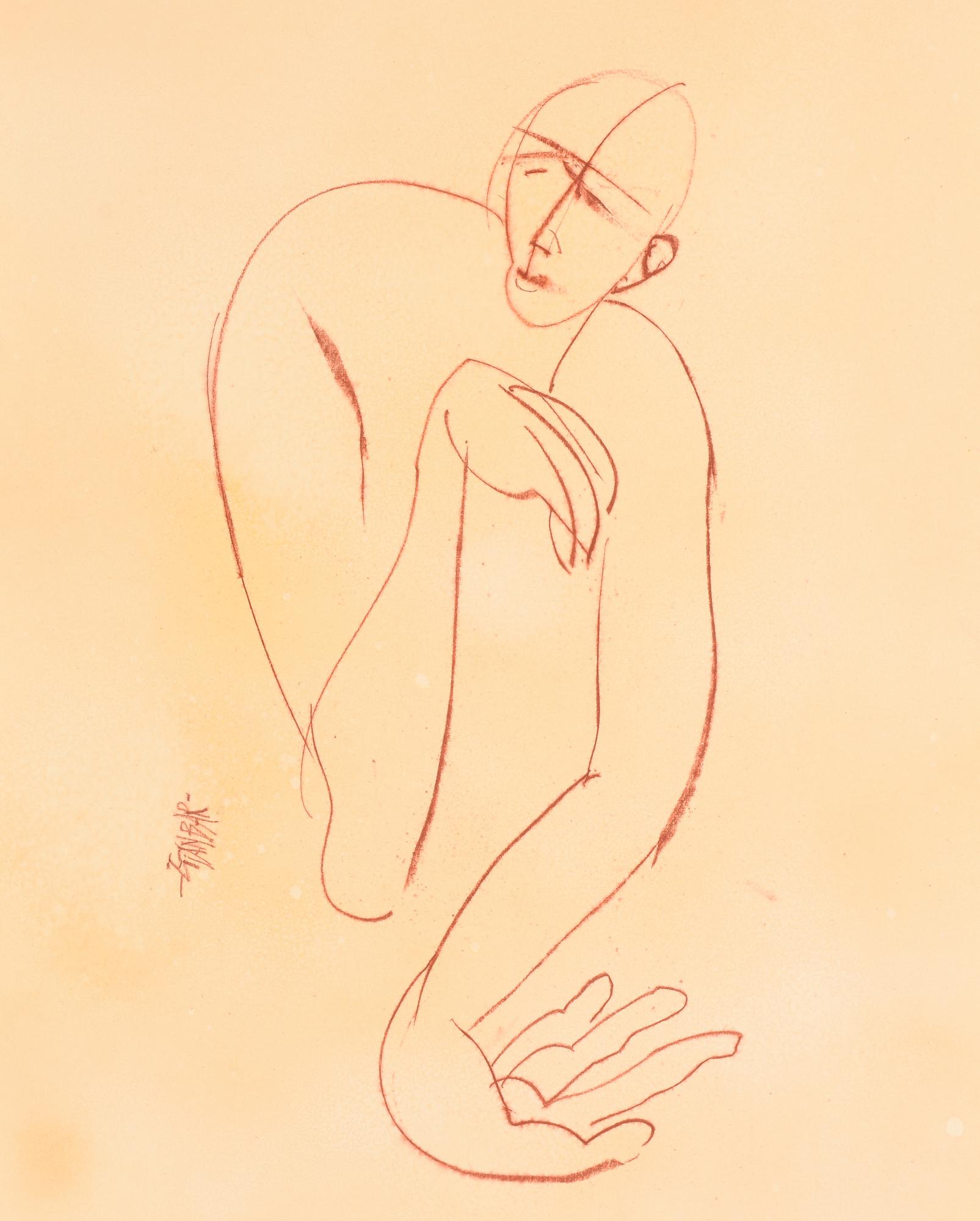 GIANBAR (Gianni Baretta) FIGURA carboncino su cartoncino, cm 44,5x32 firma