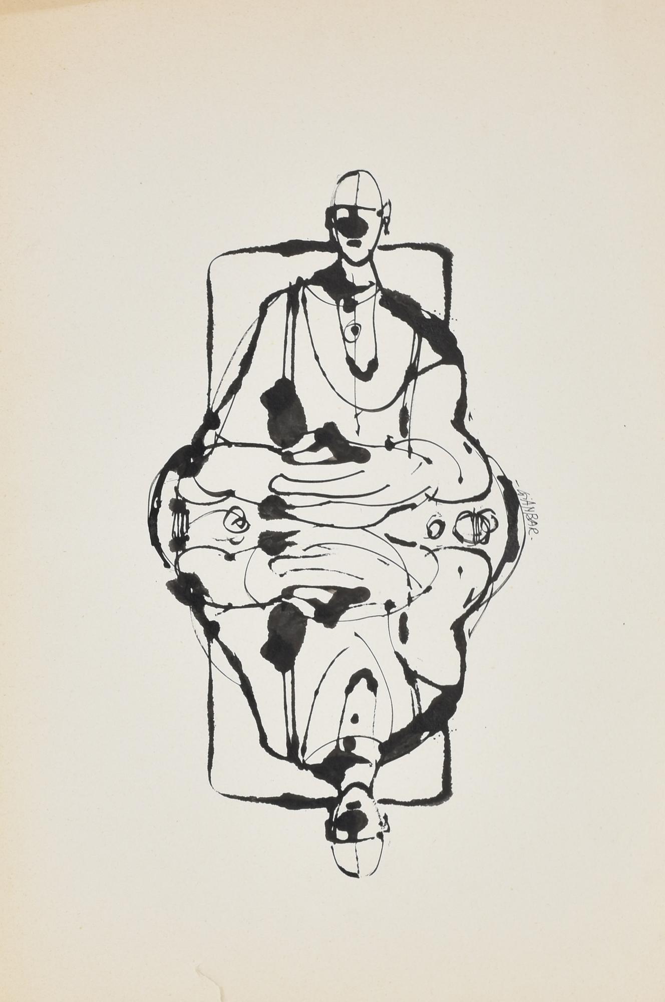 GIANBAR (Gianni Baretta) PENSATORE china acquerellata su carta, cm 42x28...
