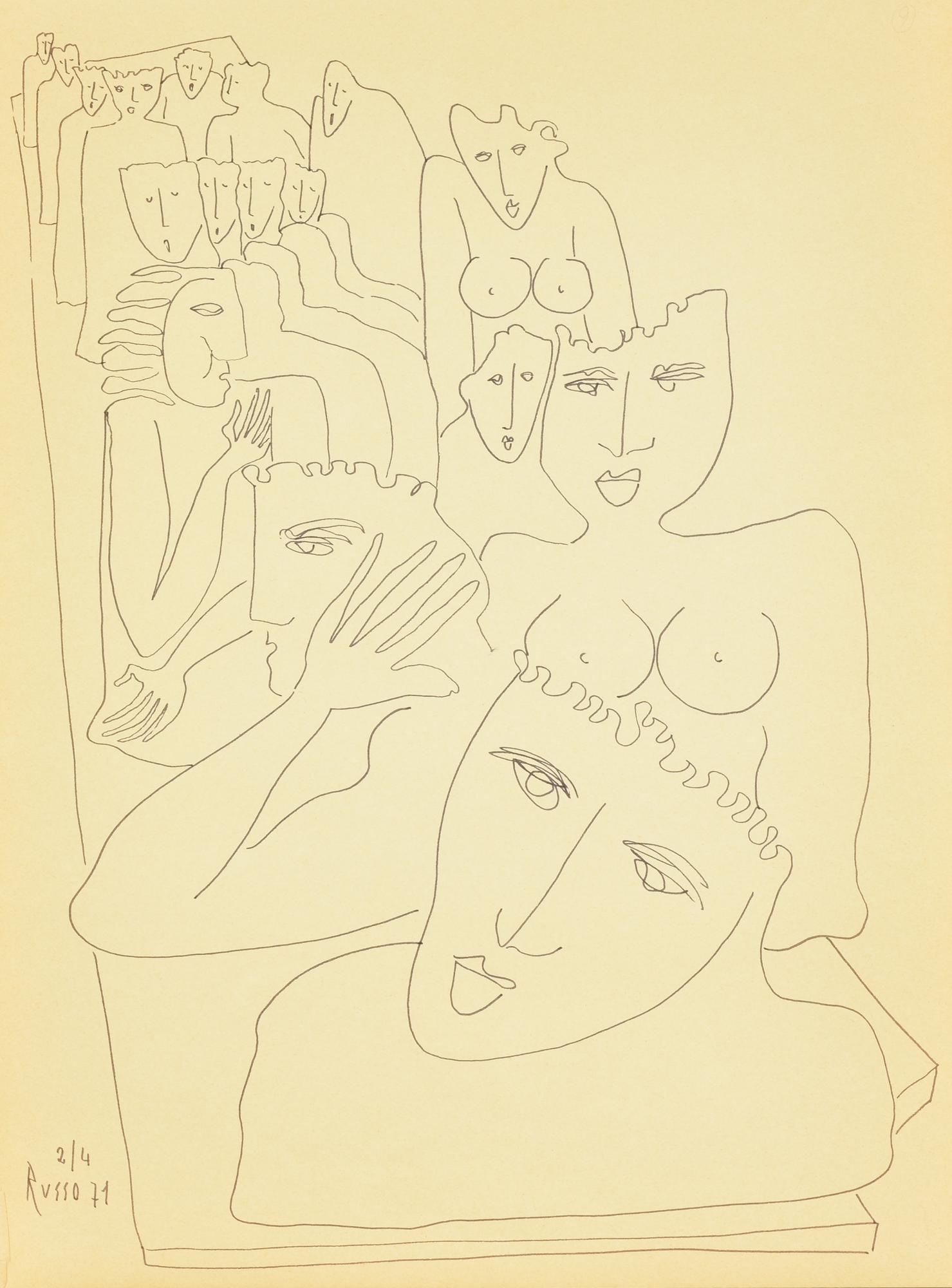 Lot 62 | Russo NUDI E FIGURE pennarello su carta, cm 40x30 firma e data eseguito nel 1971
