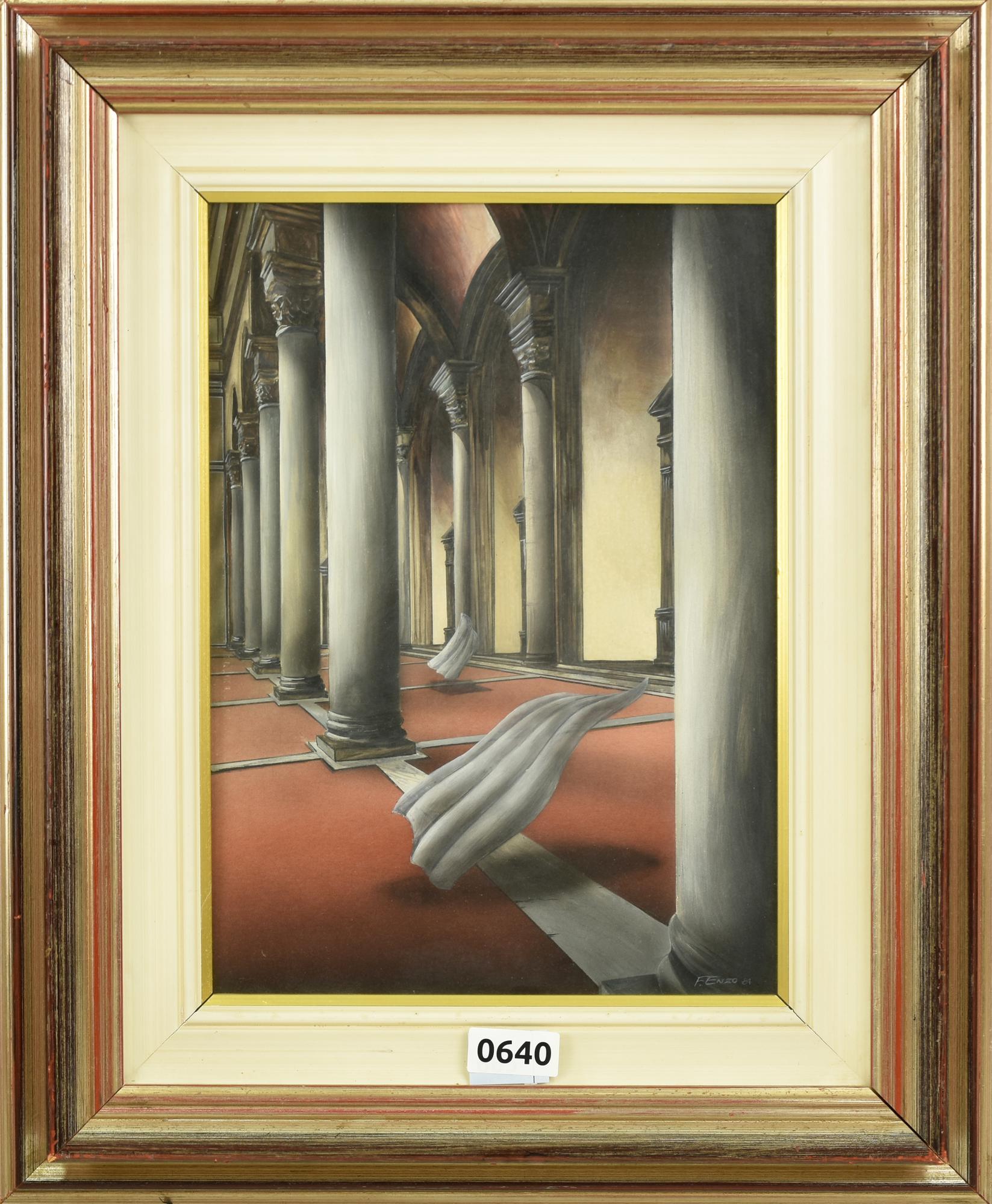 Enzo F. INTERNO METAFISICO olio su cartone, cm 36x26 firma e data sul retro:...
