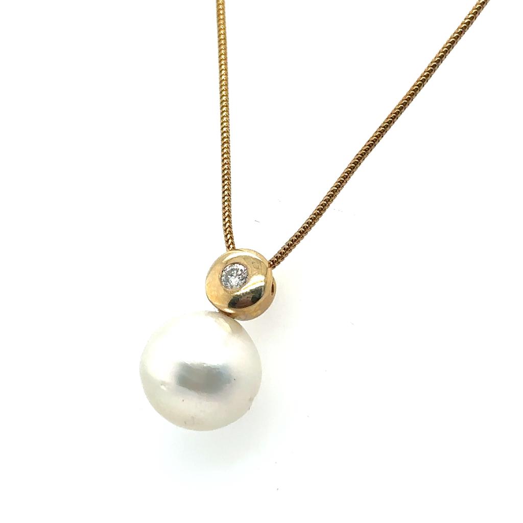 GIROCOLLO IN ORO GIALLO 14K 6.16 GR CON PERLA E DIAMANTI 0.10 CT TAGLIA 40CM CERTIFICATO ID - AI30505