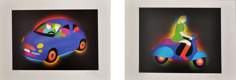 MARCO LODOLA Lotto unico di due litografie a colori firmate e numerate - Coppia in auto – es. 22/60 cm. 34x48 - Ragazza in vespa – es. 25/60 cm. 34x48 Scorniciate