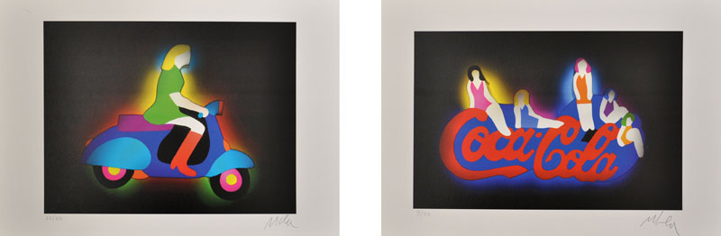 MARCO LODOLA Lotto unico di due litografie a colori firmate e numerate - Ragazza in vespa – es. 16/60 cm. 34x48 - Ragazze su insegna Coca-Cola – es. 9/60 cm. 34x48 Scorniciate