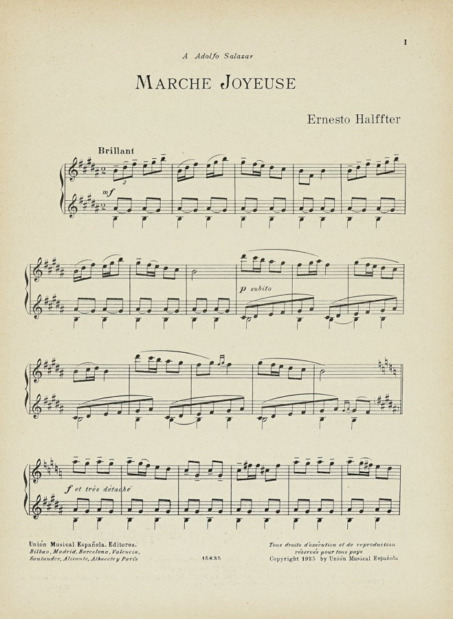 Halffter Ernesto, Marche Joyeuse / 1925. Copertina illustrata da Salvador Dalì. Numero editoriale 15635. Madrid, Uniòn Espagnola 1925.