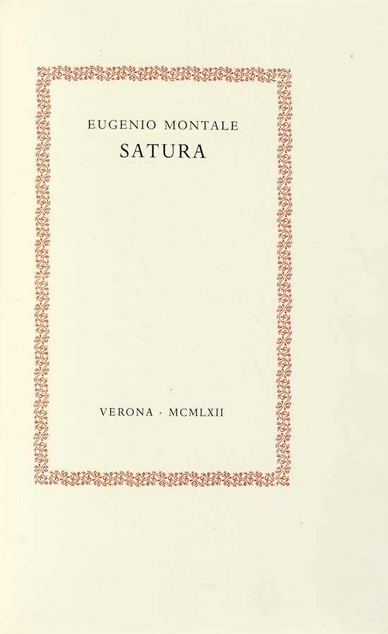 Montale Eugenio, Satura. Verona: Officina Bodoni, 1962.