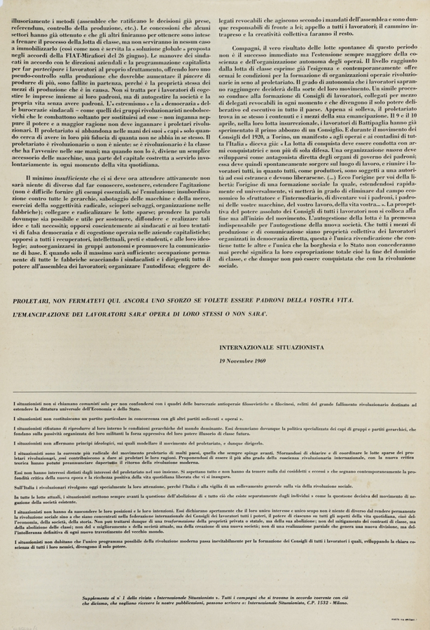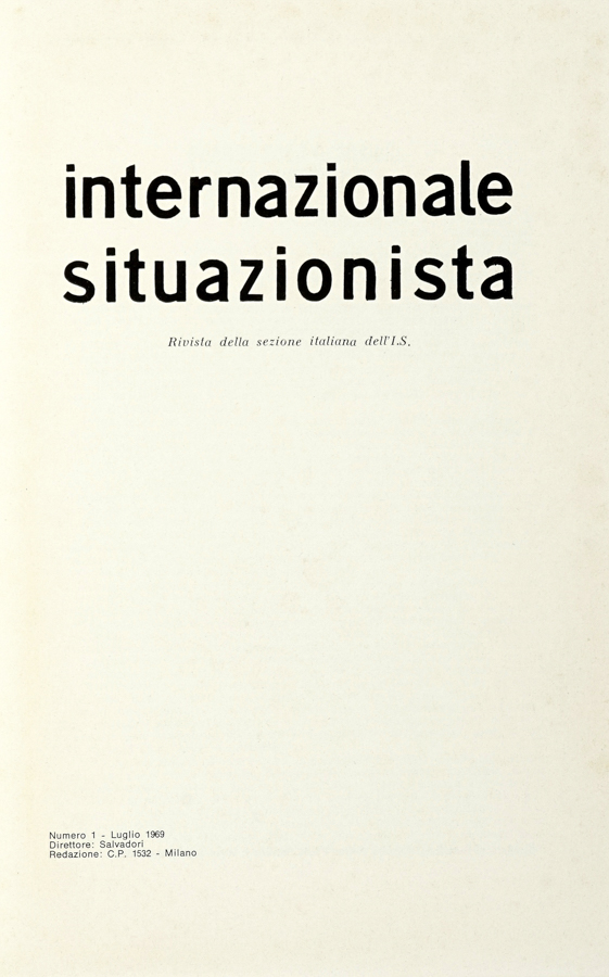 Sanguinetti Gianfranco e altri, Internazionale situazionista. Rivista della sezione italiana dell'I.S. N. 1 - Luglio 1969. Milano: Nava, 1969.