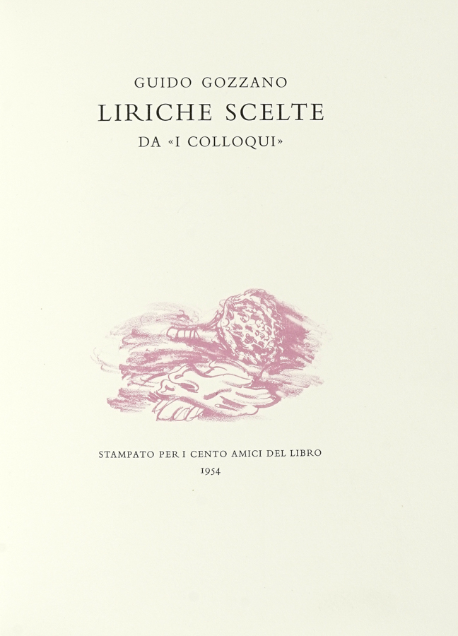 Gozzano Guido, Liriche scelte da «I colloqui». [Firenze]: Cento Amici del Libro, 1954. (Al colophon:) Verona: Officina Bodoni, 1954.