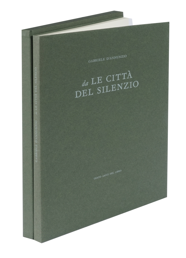 D'Annunzio Gabriele, Da: Le Città del Silenzio. Milano: Cento Amici del Libro, [1995]. (Al colophon:) Milano: Officina Tipografica Ruggero, 1995.