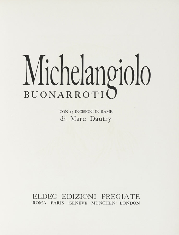 Dautry Marc, Michelangiolo Buonarroti. 17 incisioni in rame. Roma, Paris etc: ELDEC, 1975.