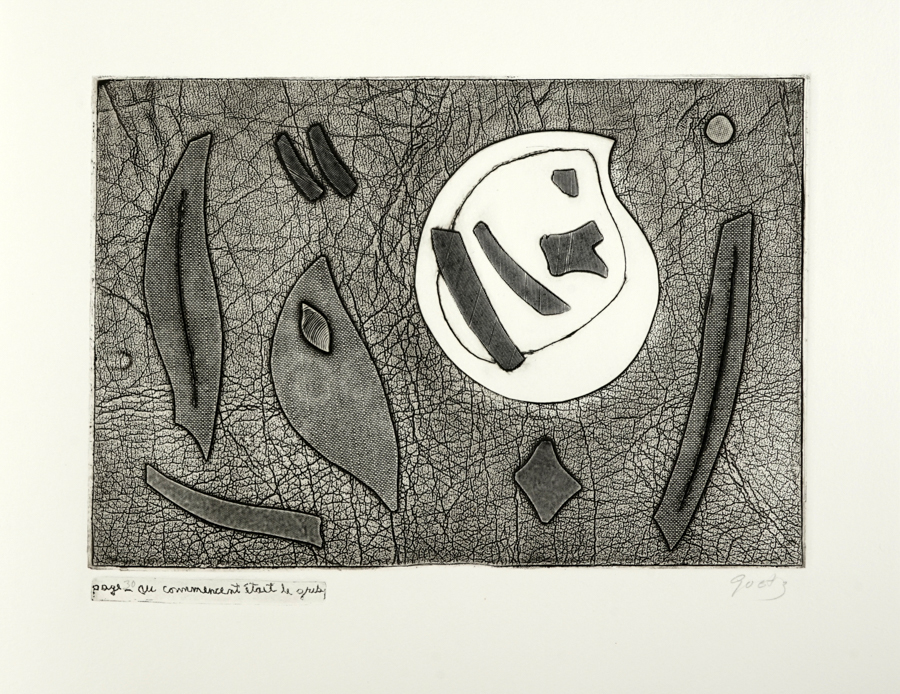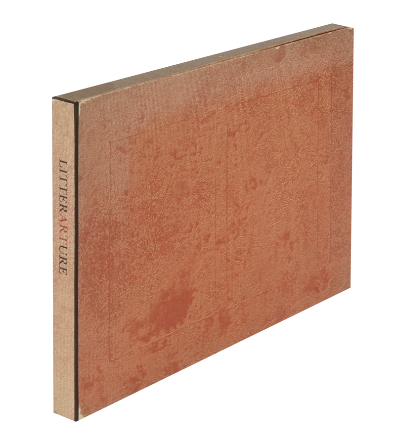 Guichard-Meili Jean, Litterarture. S.l.: Edizioni Rovio, 1982. In-4° oblungo (mm 252x330). Con 8 incisioni a carborundum di Henri Goetz nel testo, firmate a matita dall'Artista e protette da velina. Ottimo esemplare a bifoli sciolti, perfettamente conservato nelle sue barbe. Cofanetto editoriale in mezza tela, con piatti in carta e titoli in nero al dorso. Minimi segni di usura. Uno dei 90 esemplari in numeri arabi, su una tiratura complessiva di 130, numerati e firmati a matita dall'Autore e dall'Artista al colophon. (1)
