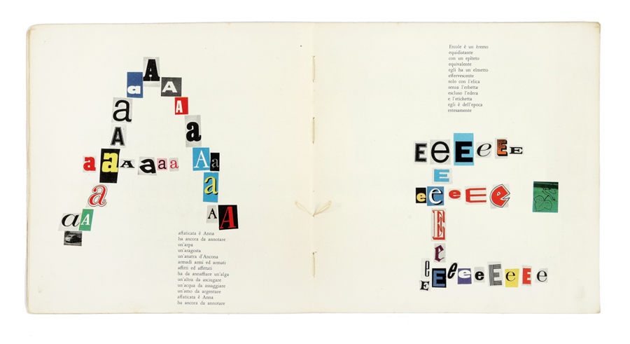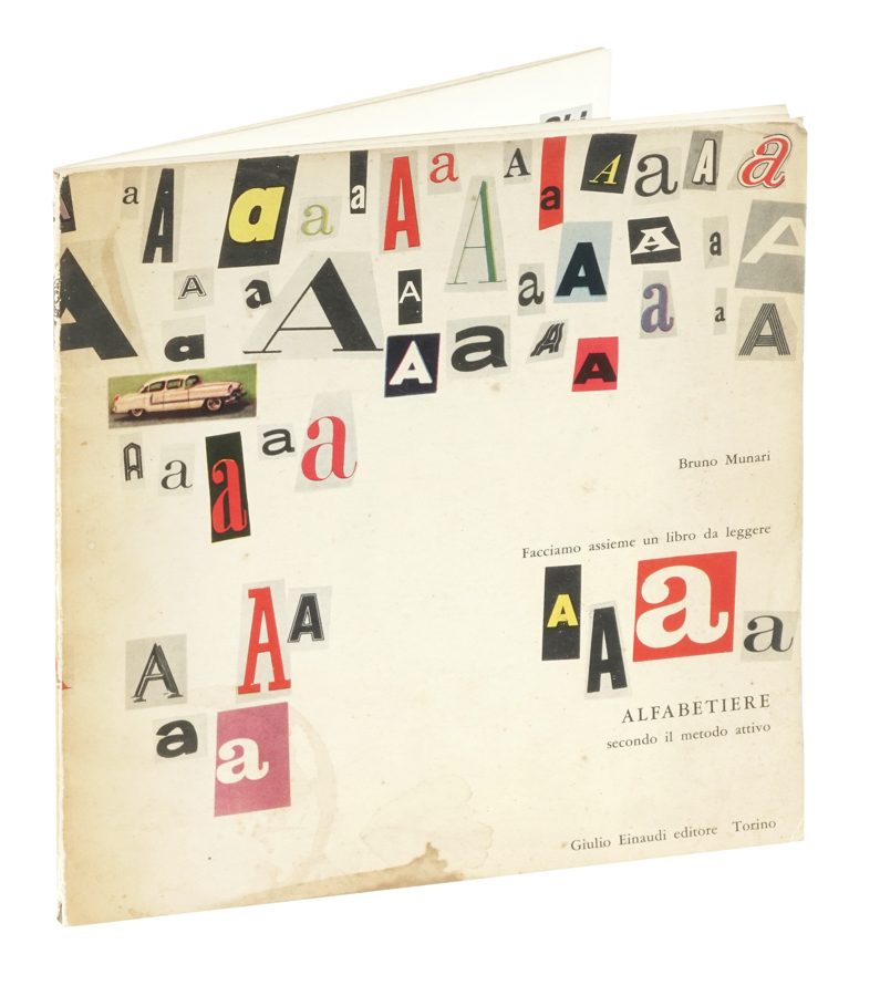 (1)«Nel caso di questo alfabetiere il bambino può intervenire continuando a incollare nelle pagine le lettere dell'alfabeto che avrà prima scelto e ritagliato da vecchie riviste, così come io ho cominciato a modo di esempio [...]. Invitate quindi i vostri bambini a continuare questo libro così come io lo ho cominciato [...]. Ogni bambino avrà, alla fine, un libro diverso, il suo primo libro.». Rara prima edizione.
