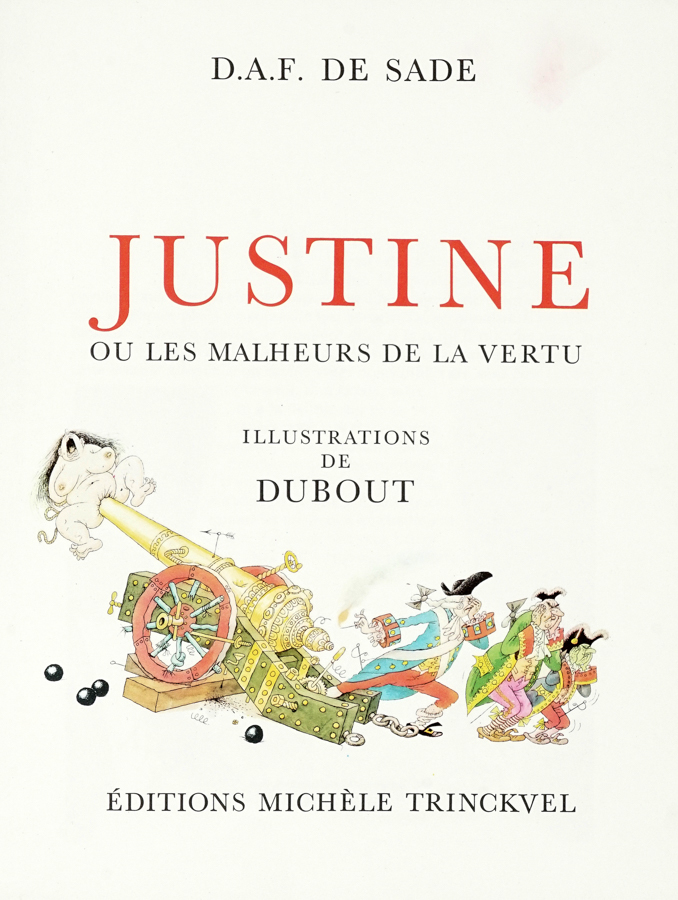 Sade Donatien Alphonse François, Justine ou les malheurs de la virtue. Illustrations de Dubout. France: Michèle Trinckvel, 1976.