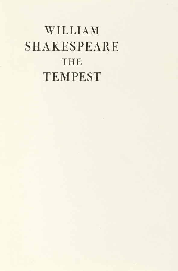 Shakespeare William, The Tempest. (Al colophon:) Montagnola di Lugano: Officina Bodoni, 1924.