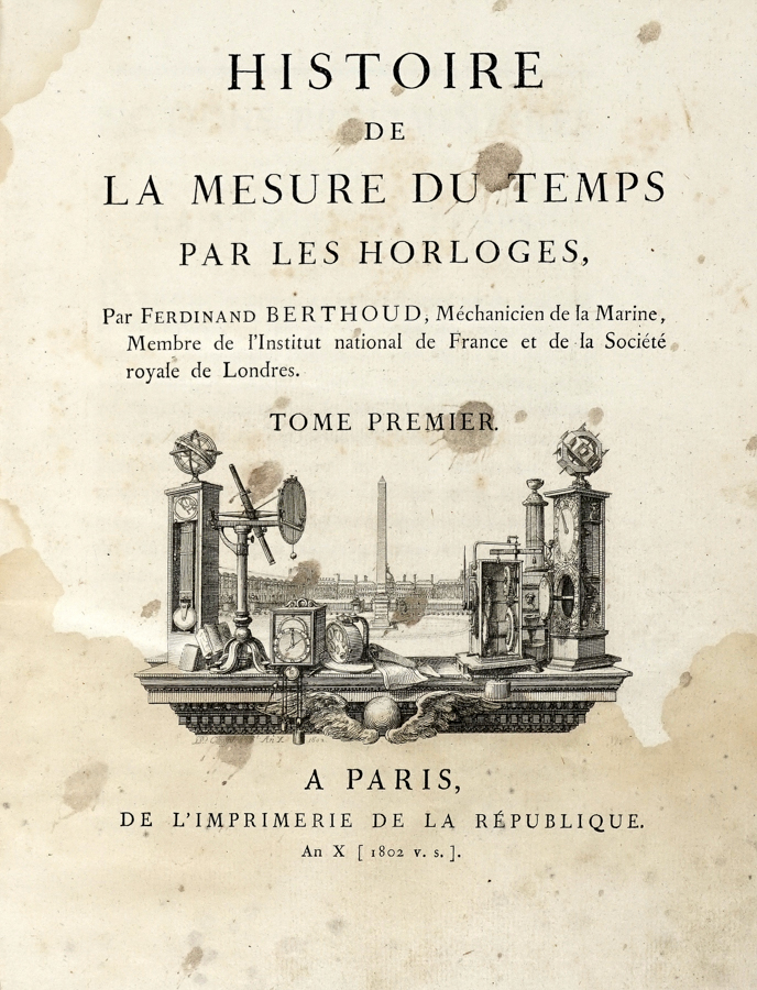 Berthoud Ferdinand, Histoire de la mesure du temps par les horloges... Tome premier (-second). A Paris: de l'imprimerie de la République, 1802.