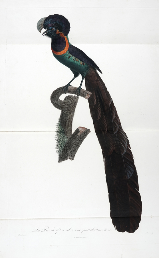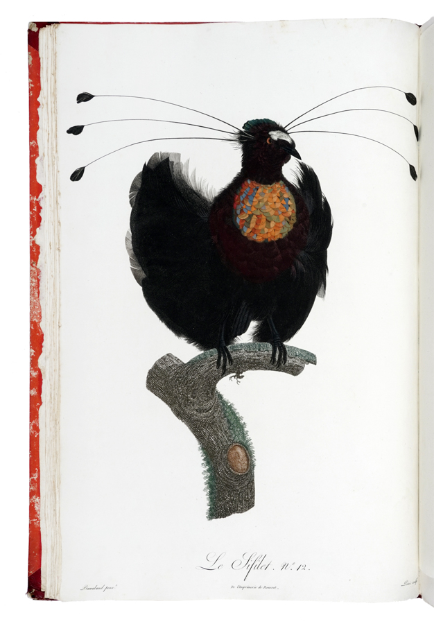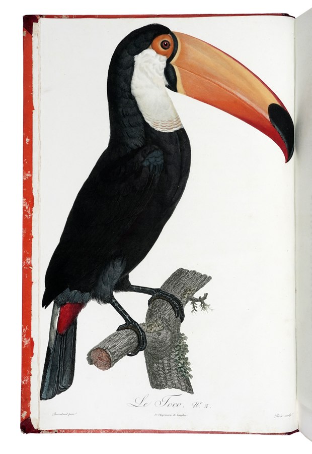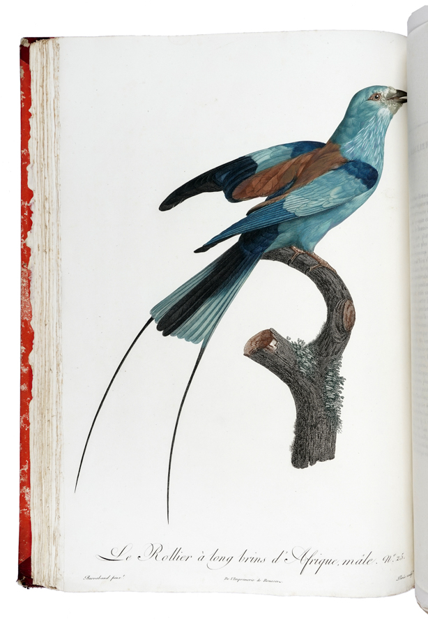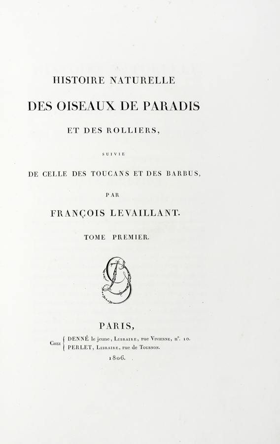 Levaillant François, Histoire naturelle des oiseaux de paradis et des rolliers, suivie de celle des Toucans et des Barbus. Tome premier (-second). Paris: Denné le jeune et Perlet, 1806.