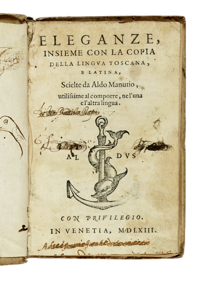 Manuzio Aldo, Eleganze, insieme con la copia della lingua toscana, e latina... In Venetia: [Paolo Manuzio], 1563.