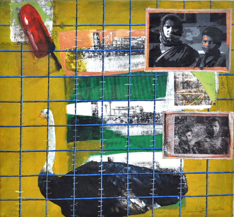 AMEEN KHALEEL Picnic motifs, 2007 Olio e collage su tela cm. 56,5x57 Firma e data in basso a destra Firma, data e titolo sul retro