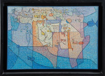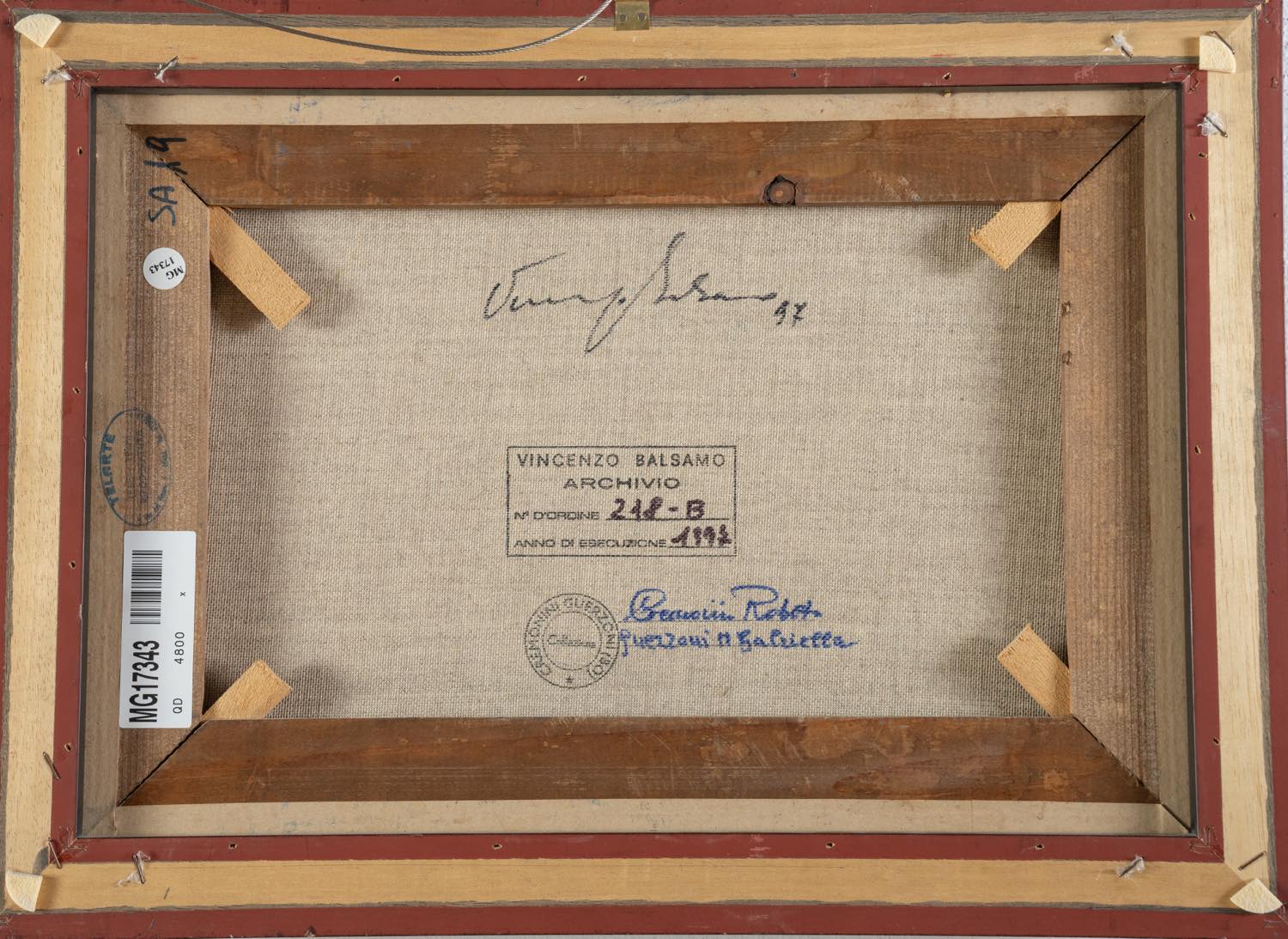 Vincenzo Balsamo (Brindisi 1935 - Roma 2017), “Senza titolo”, 1997.Olio su tela, reca al retro firma e data, timbro dell’Archivio Vincenzo Balsamo con numerazione 218-B e data 1997, presenta sul telaio numerazione SA 19 e timbro della Collezione Cremonini Guerzoni - Bologna, H cm 33x47