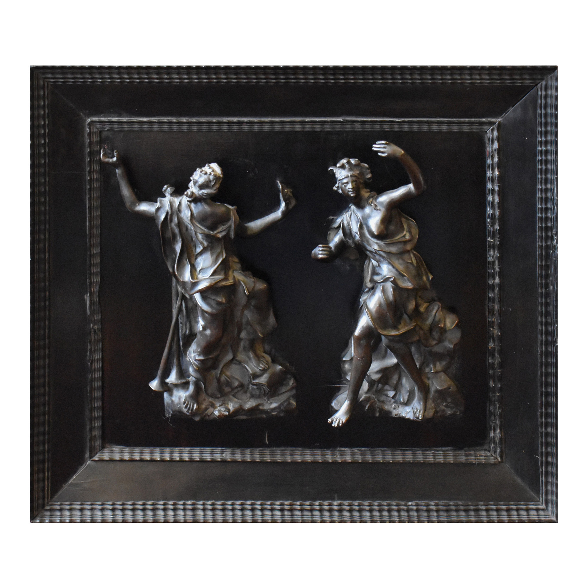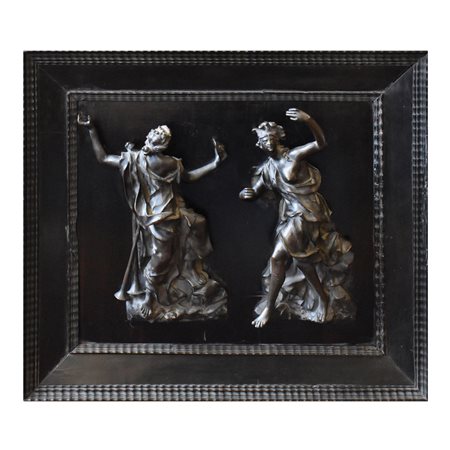 Placca in legno ebanizzato con due bronzi, sec.XVII