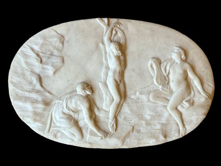 scultura in marmo bianco "Apollo e Marsia" sec.XVII