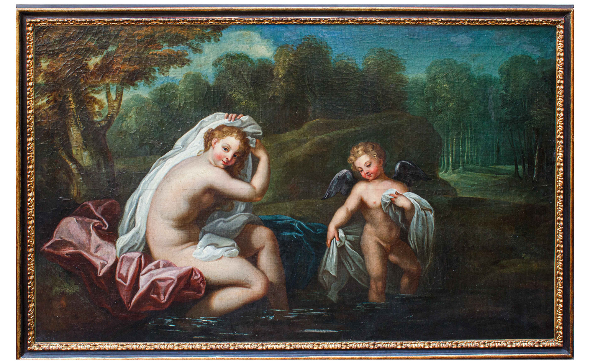 "Ninfa al bagno in compagnia di Cupido" olio su