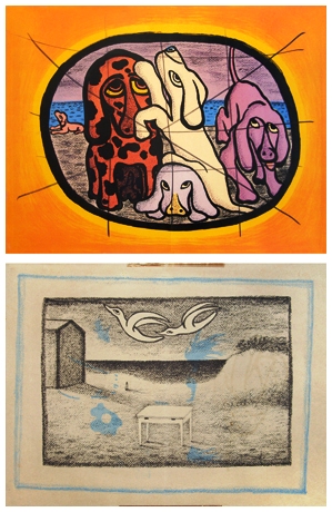 GIUSEPPE VIVIANI Agnano Pisano 1898 – Pisa 1965 Gruppo di cani 1963 Litografia a 7 colori / biffata; sul verso stampa parziale di “tavolo e uccelli”. (56,6 x 76,5 foglio e lito.) L’opera è stata archiviata e catalogata come variante della litografia pubblicata sul catalogo “Viviani litografo” a cura di Nicola Micieli e Silvio Guarasci, Editore Bandecchi e Vivaldi, Pontedera, 1988, pp.87, 128 e sarà pubblicata sul prossimo “Catalogo Generale Opere di Giuseppe Viviani”.
