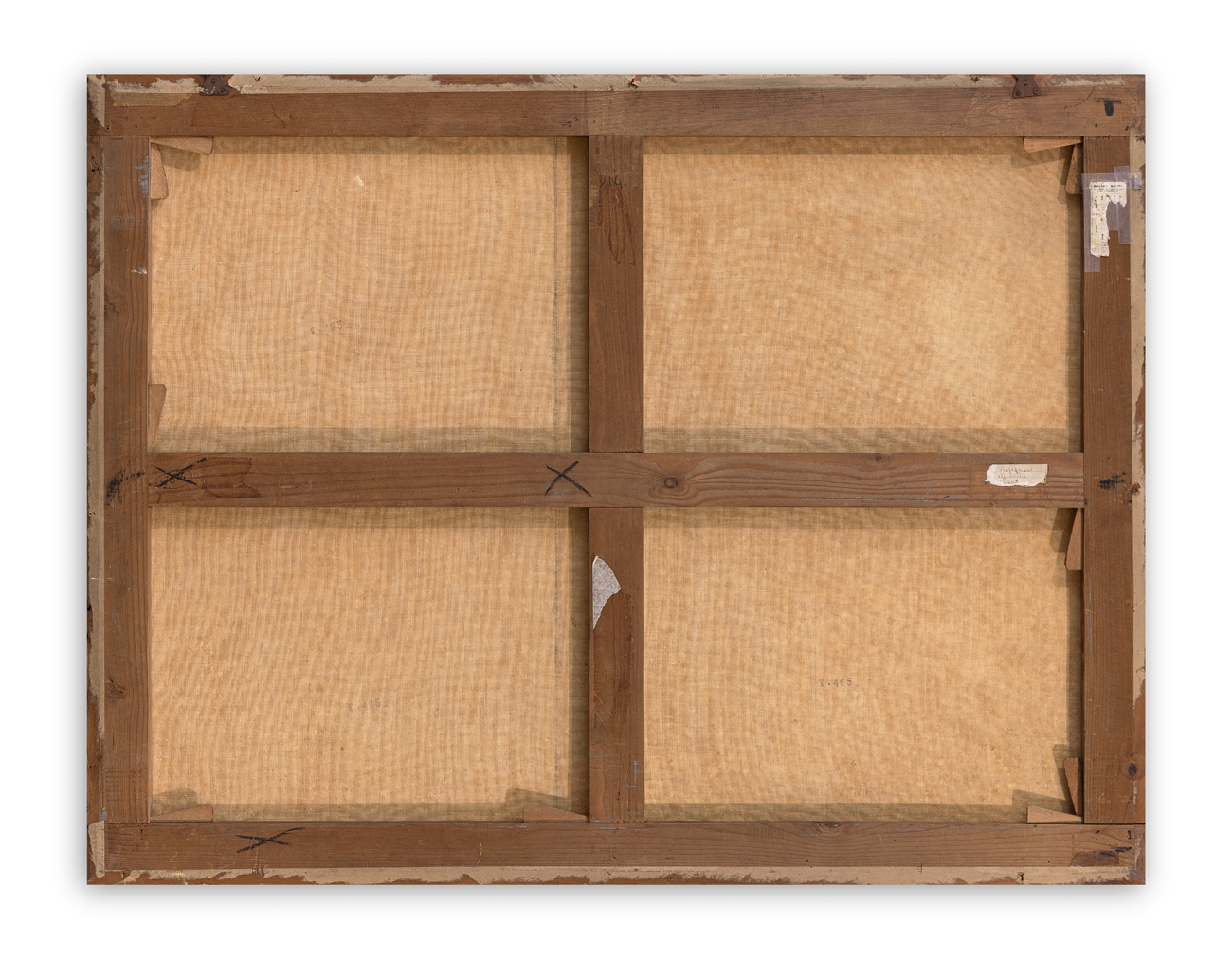 Etichetta della Galleria Mutina (MO) con caratteristiche tecniche dell'opera al retro (parzialmente abrasa)