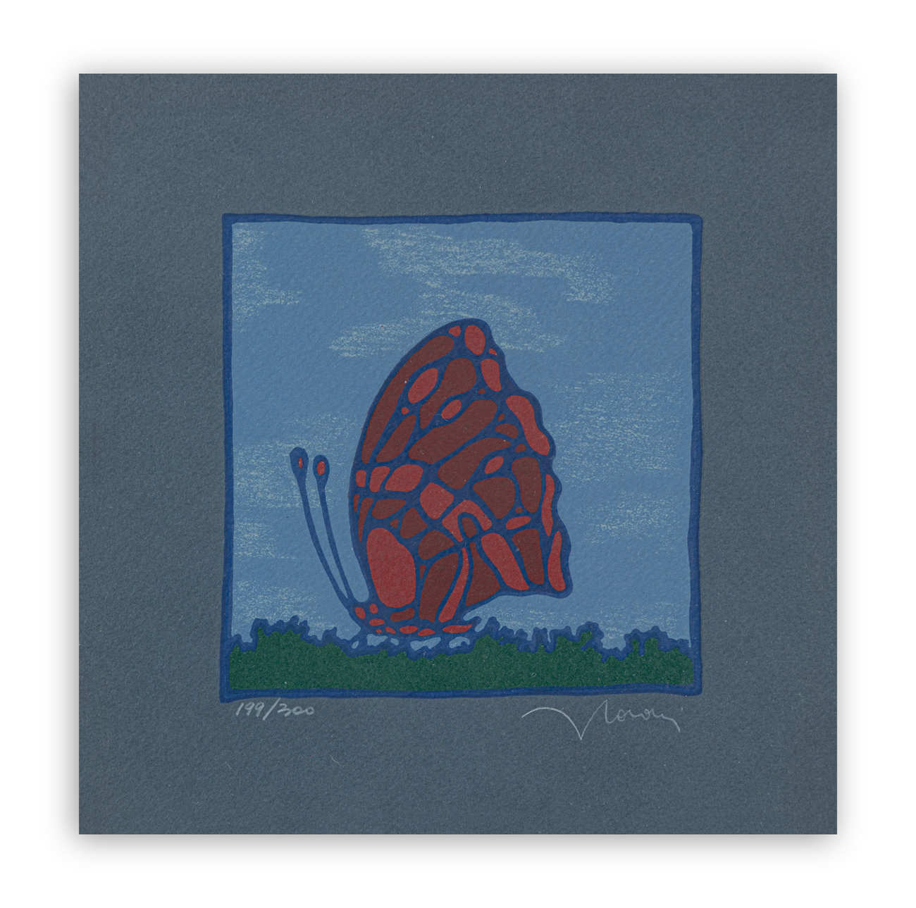 Firma e numerazione (Esemplare 199/300) a matita al fronte