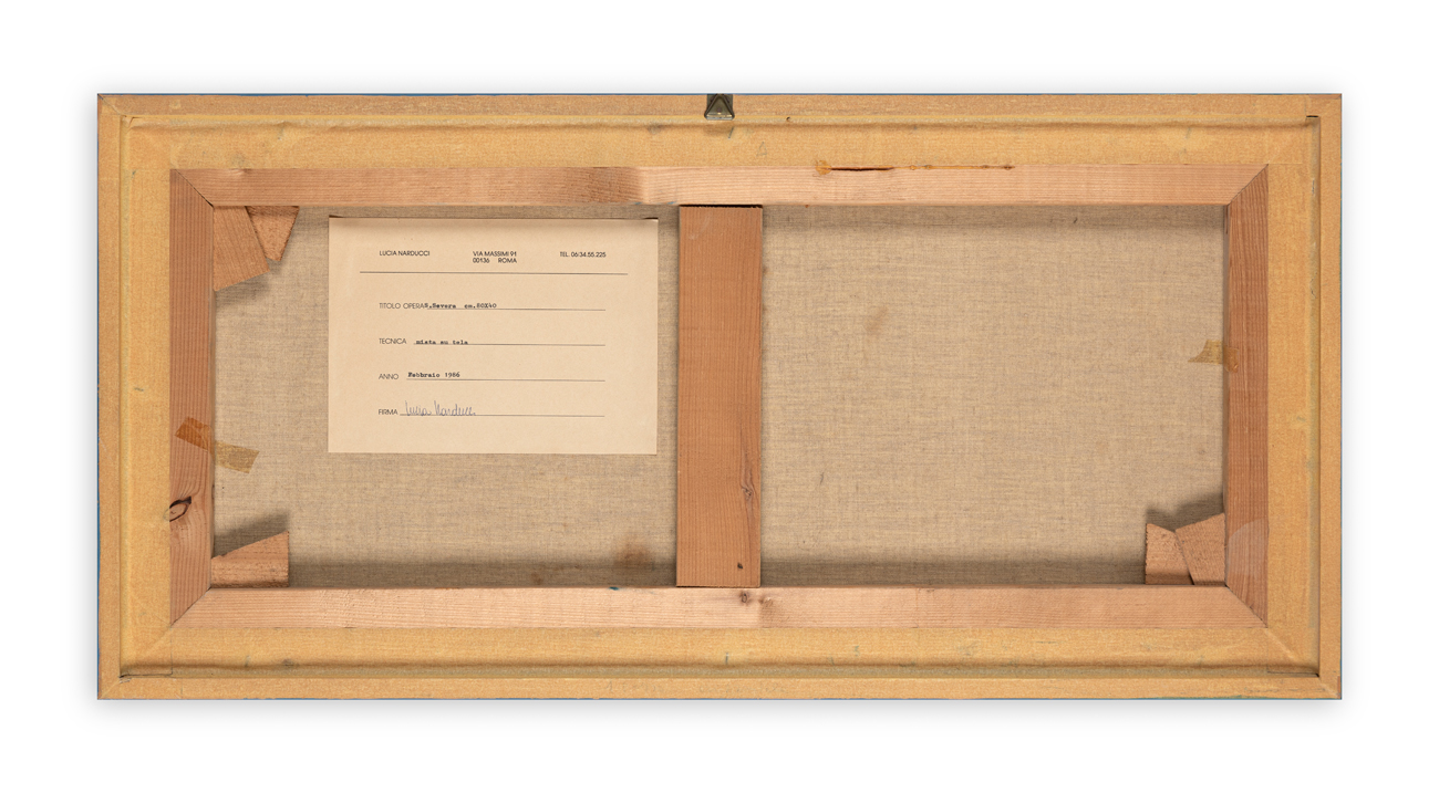 Etichetta dell'Artista con caratteristiche tecniche dell'opera e firma al retro