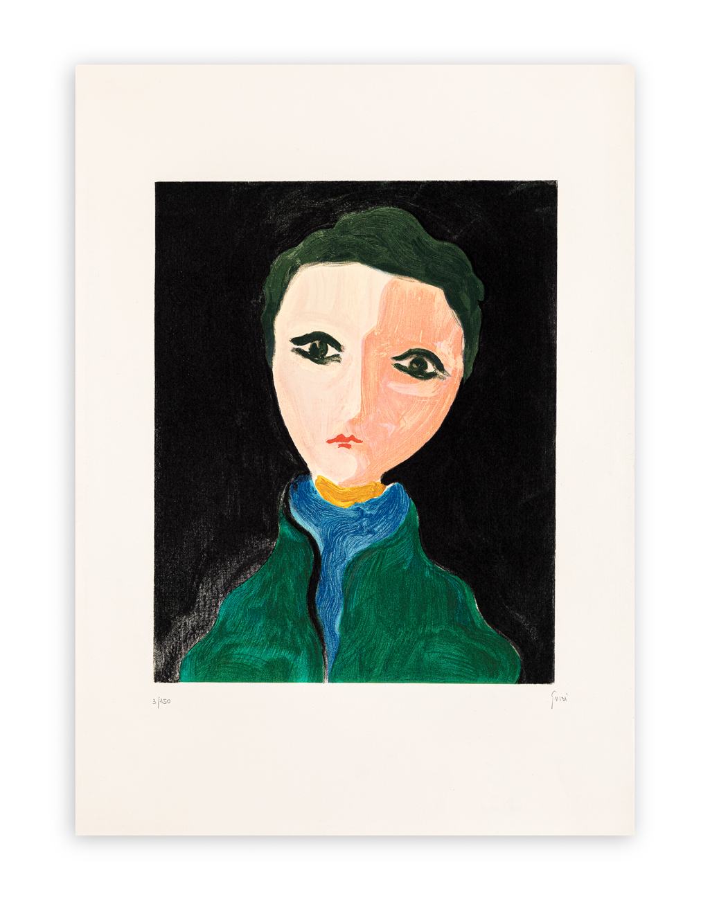 Firma e numerazione (Esemplare 3/150) a matita al fronte