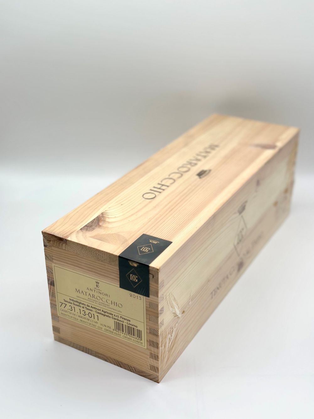 Toscana, Matarocchio DOC - 1 Magnum (Mg), annata 2013. Livello: entro il collo (WN), livello di colmatura standard. Confezione: scatola di legno originale (OWC), ancora sigillata. Condition report: etichetta e capsula in perfette condizioni.
