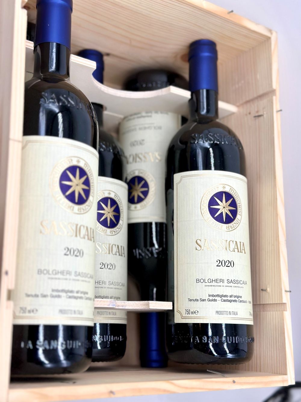 Toscana, Sassicaia DOC - 6 bottiglie (bt), annata 2020. Livello: entro il collo (WN), livello di colmatura standard. Confezione: scatola di legno originale (OWC). Condition report: etichetta e capsula in perfette condizioni.