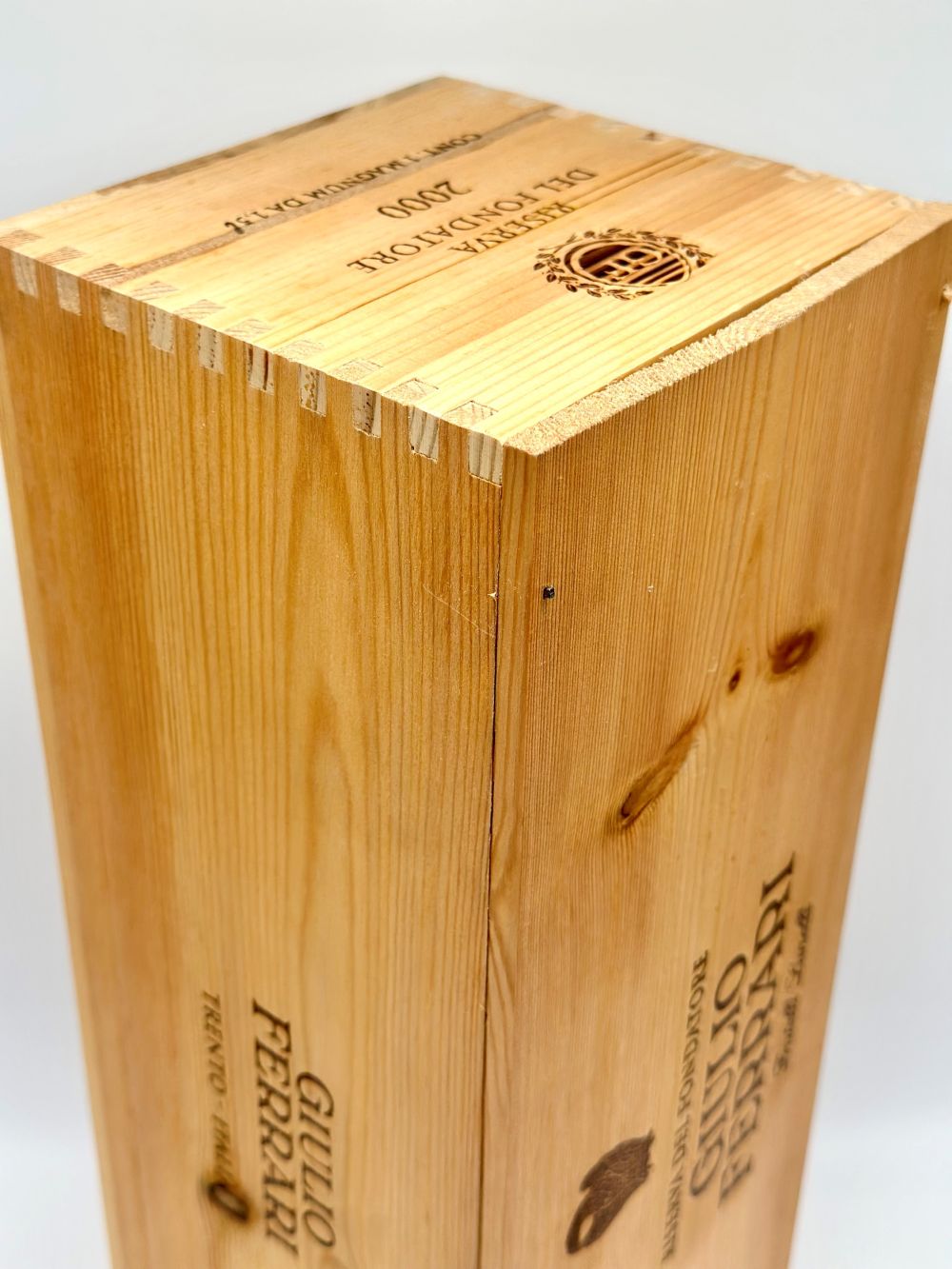 Trentino Alto Adige, Trentodoc - 1 Magnum (Mg), annata 2000. Livello: entro il collo (WN), livello di colmatura standard. Confezione: scatola di legno originale (OWC). Condition report: etichetta e capsula in perfette condizioni.