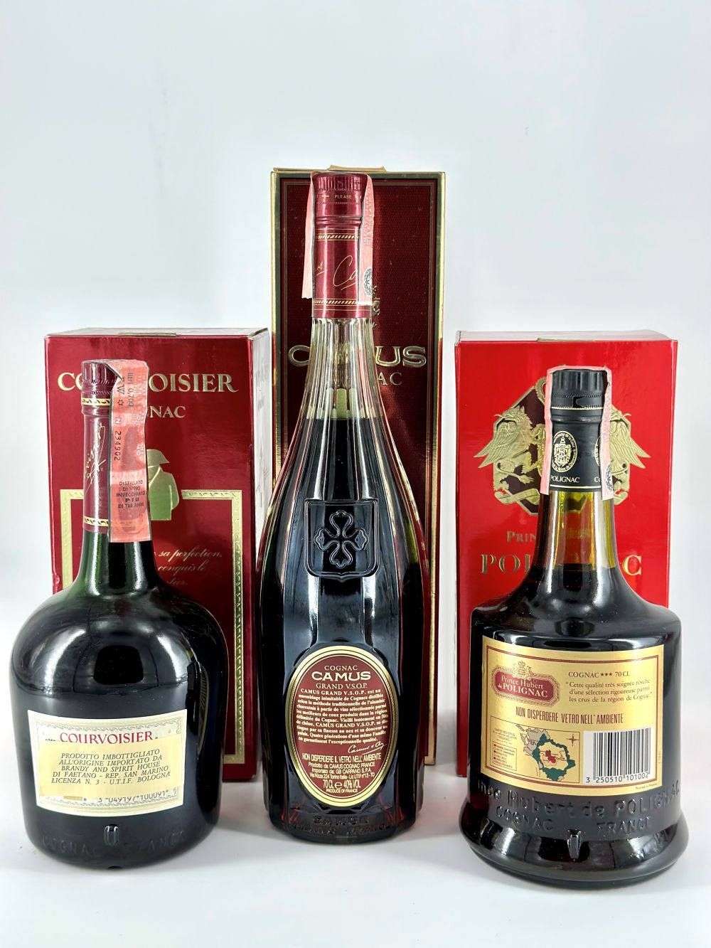Courvoisier Trois Etoiles Luxe Cognac - Camus Grand V.S.O.P. Cognac - Prince Hubert de Polignac Royal X.O. Cognac