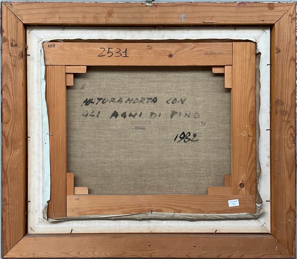 Lot 2018 | Giuseppe Ajmone "Natura morta con gli aghi di pino" 1982 olio su tela cm 38x46 f