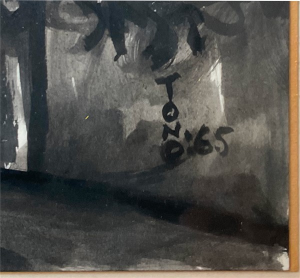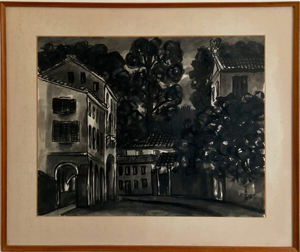 Tono Zancanaro "Padova: via S. Eufemia" 1965 china acquerellata su carta cm 37x4
