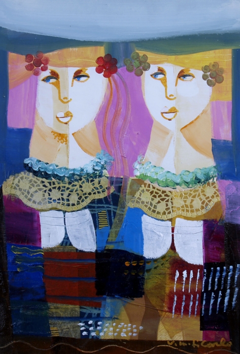 DI CARLO VITTORIO (San Marco in Lamis 1943) "Le amiche" Olio e collage su...