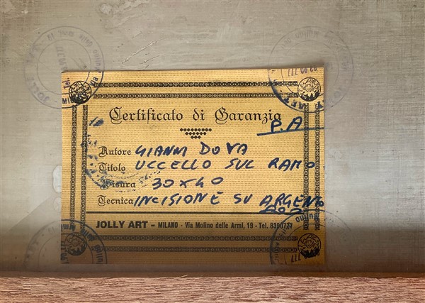 Gianni Dova "Uccello sul ramo" multiplo - incisione su lastra metallica cm 40x3