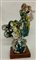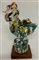 terracotta smaltata in verde, bianco, giallo e oro,su base in legno
