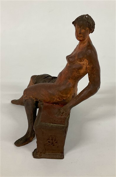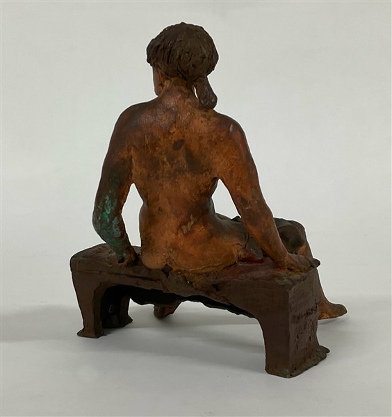 Ugo Riva Scultura in bronzo raffigurante donna nuda su panchina Firmata e iscri
