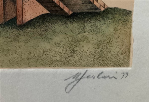 Lotto composto da un'acquaforte a colori di Massimo Scolari (foglio cm 32x25) f