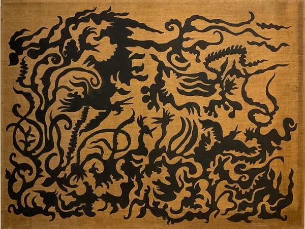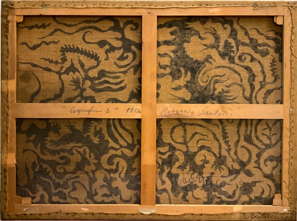 Romano Santucci "Cespuglio 1" 1987 olio su tela di juta cm 120x160 firmato, tito
