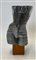 Scultura-multiplo dinamica in plastica cromata su base in legno