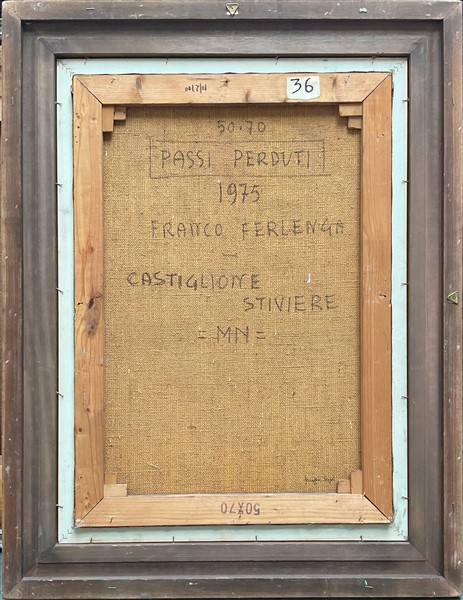 Franco Ferlenga "Passi perduti" 1975 olio su tela cm 70x50 firmato e datato in b