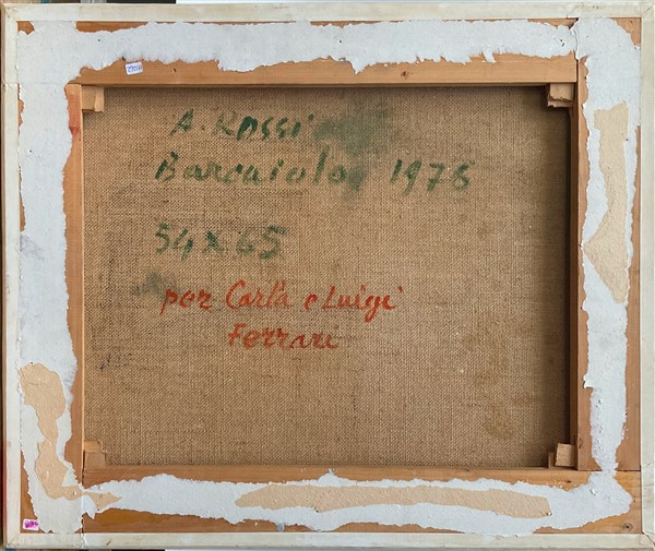 Attilio Rossi "Barcaiolo" 1976 tempera su tela cm 55x66 firmato e datato in bass