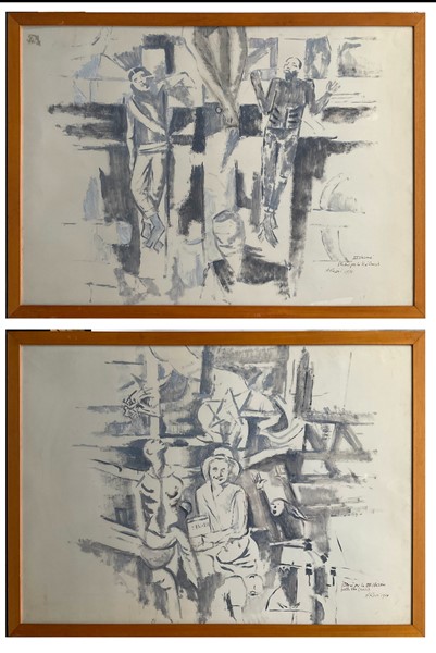 Attilio Rossi "Due studi per la via Crucis: Stazione VIII e XII" 1974 tempera su